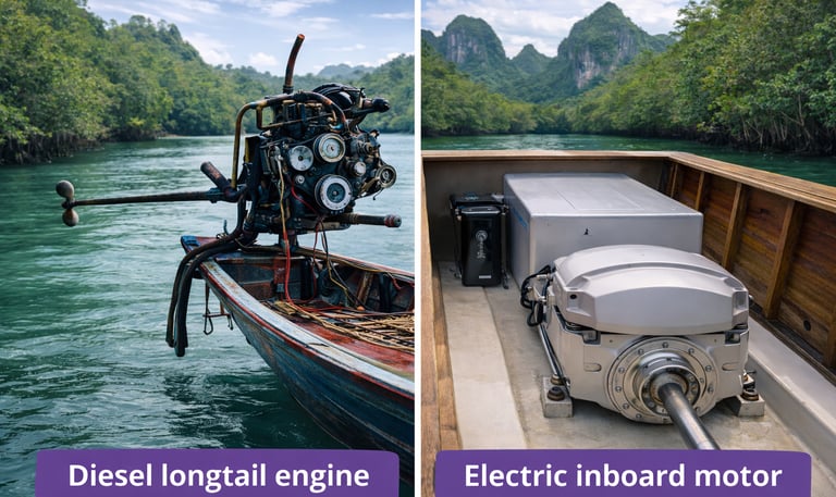 Through strong local partnerships and global expertise, we test, validate, and scale initiatives such as electric propulsion, longtail boat retrofits, floating infrastructure, sustainable waste management, and access to clean drinking water—creating transparent, replicable models that support marine ecosystems, tourism, and local livelihoods across Thailand.
